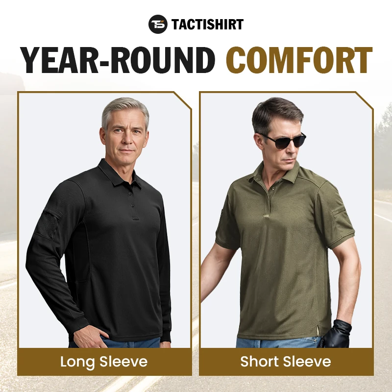 Whether it’s the relaxed ease of a crewneck or the added warmth of a collared, long-sleeve design, the TactiShirt is built to keep you comfortable in every season, adapting effortlessly to your daily needs.